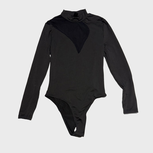 Body manga largo negro transparente en V