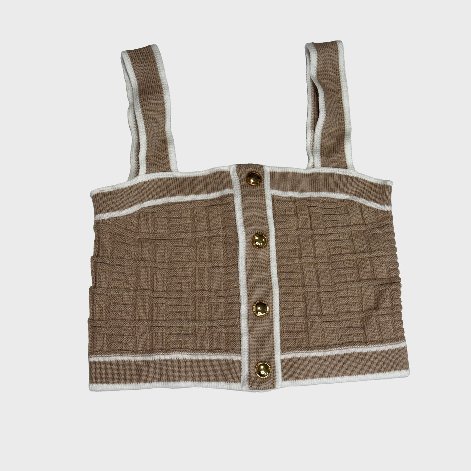 Disfruta de un look fresco y juvenil con este top corto beige con botones. Combina comodidad y tendencia para que luzcas increíble todos los días.