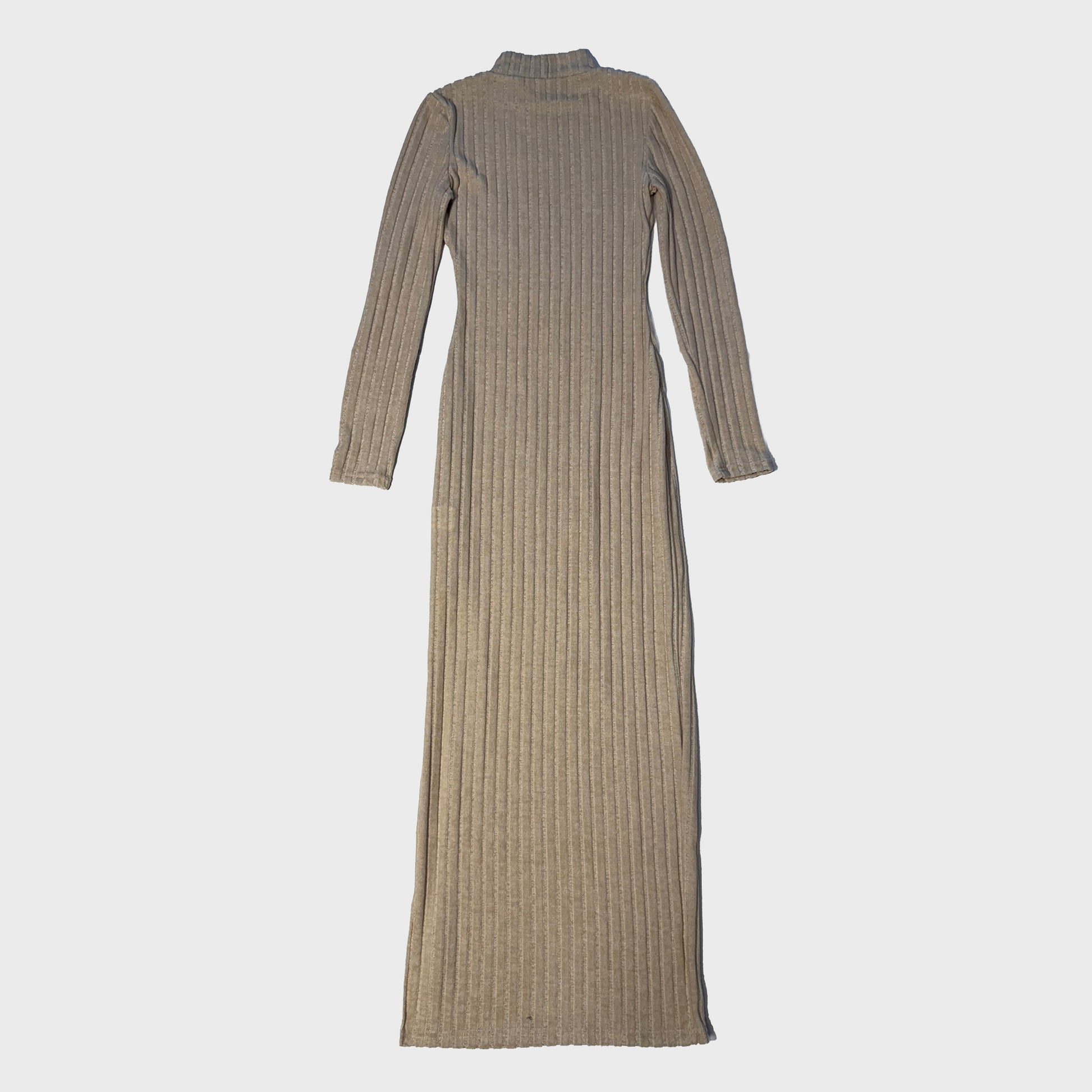 Este vestido beige largo cuello alto es una prenda imprescindible para tu guardarropa. Su diseño combina elegancia y estilo para cualquier ocasión.